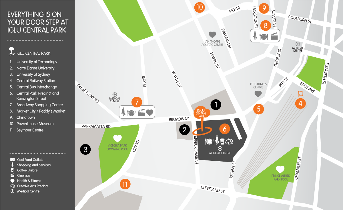 位于 Chippendale 的 Iglu Central Park 学生公寓,带你沉浸在悉尼的都市魅力之中。舒适的公寓环境让学习更高效,生活更精彩,在这里,你将体验到城市生活的所有便利。Chippendale 区域高校云集,文化氛围浓厚,作为重点发展区域,这里经历了投资与建设的复兴,焕发出现代而充满活力的社区氛围。交通便利,特色咖啡馆、酒吧与丰富的夜生活应有尽有,休闲选择多样。邻近的 Central Park 为你提供城市中的绿洲,在繁忙之余,也可以静下心来发发呆、放松身心。静与动的完美平衡,让 Iglu Central Park 成为学生心中最具吸引力的理想聚居地。